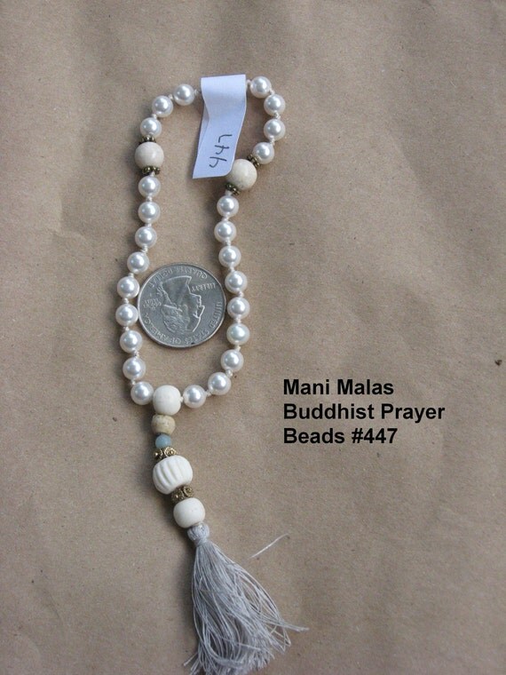 BUDDHIST HAND MALA, 27 beads, prayer beads, swarovski pearls, hand knotted, ooak, free shipping, 447
